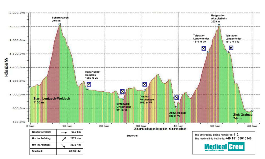 - Strecke: 60.7 km, 2973 Höhenmeter Aufstieg und 3300 Meter Abstieg