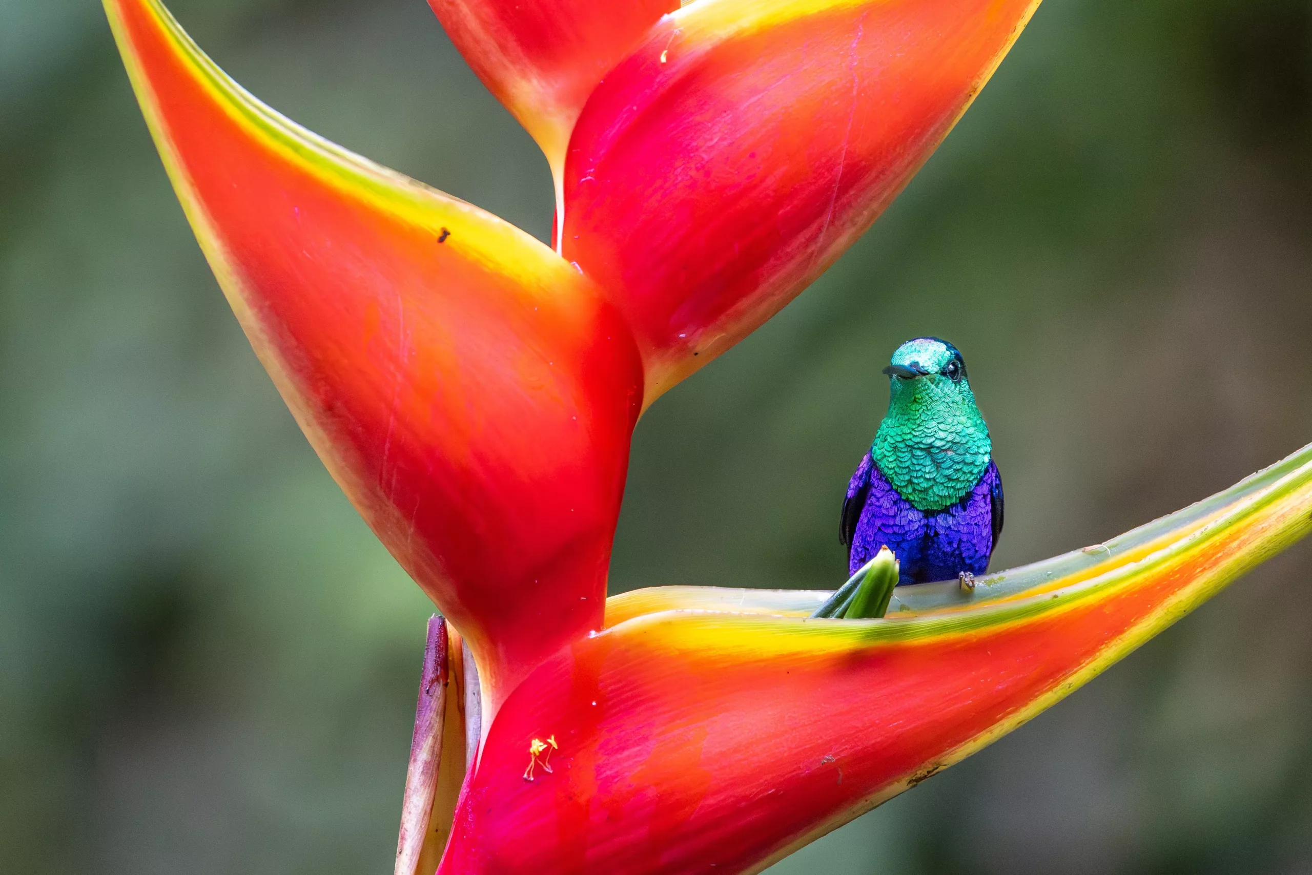 Red-headed Barbet, Eubucco bourcierii Crowned Woodnymph, Thalurania colombica