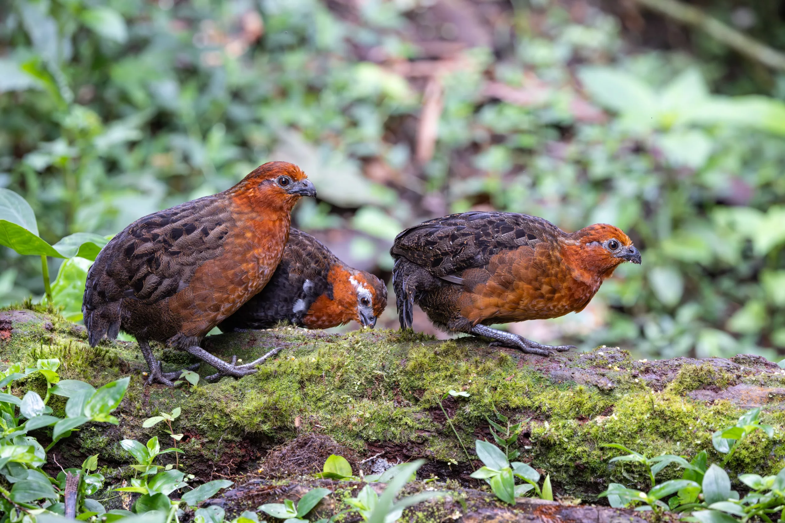 Chestnut Woodquail, Odontophorus hyperythrus Chestnut-crowned Antpitta, Grallaria ruficapilla Masked Trogon, Trogon personatus