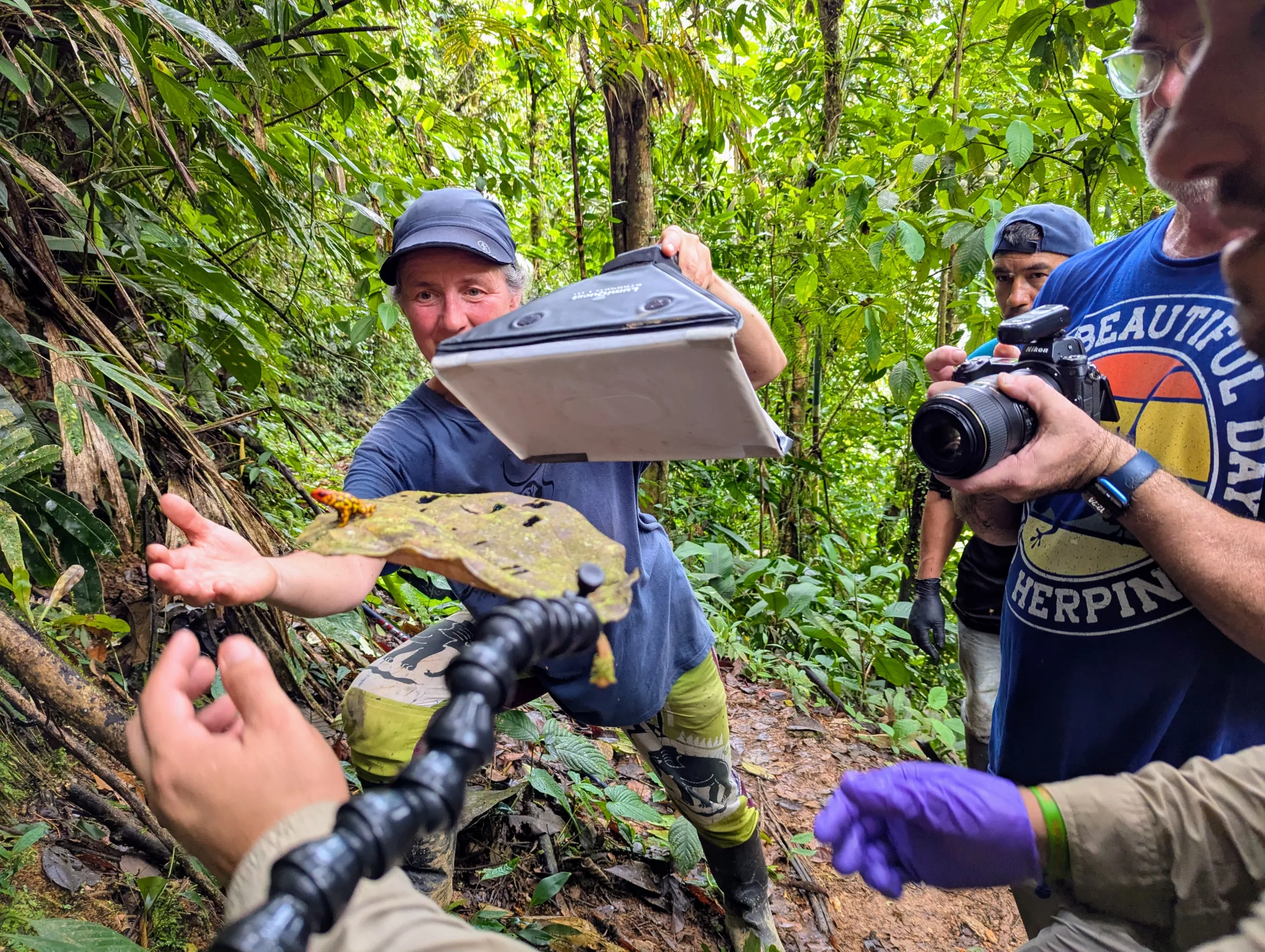 PS: Bei jedem Standortwechsel haben wir unsere Gummistiefel peinlich sauber geputzt, um allfällige Pilzerreger nicht zu verschleppen. Die wenigen Frösche, die der Guide oder wir angefasst haben, wurden nur mit Einmal-Handschuhen angefasst.